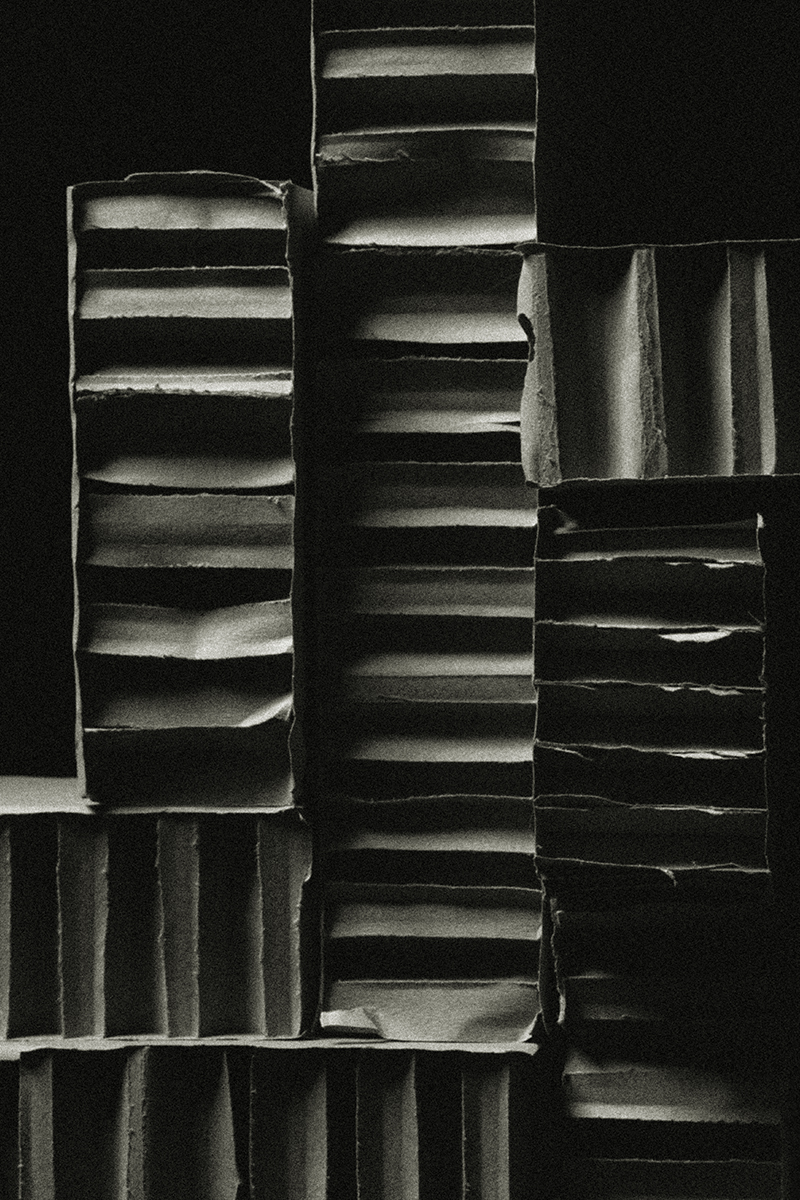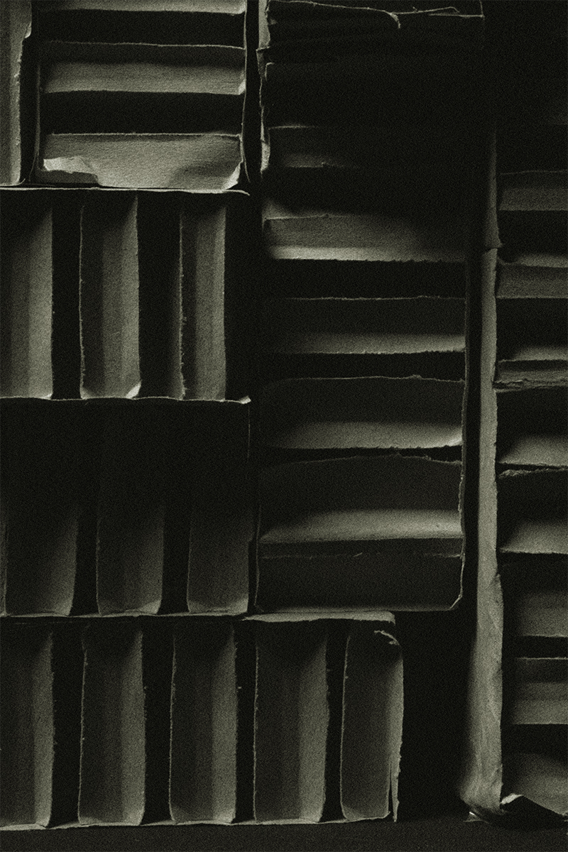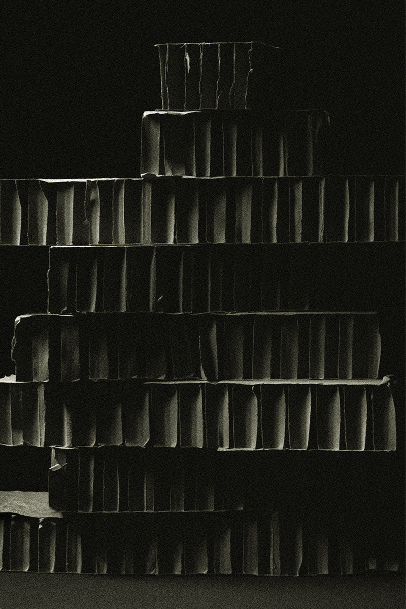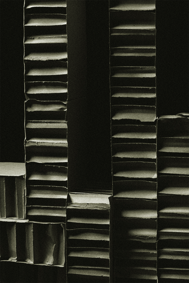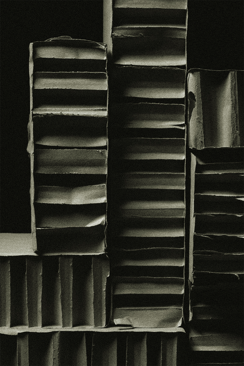 abritée au cœur du vide. En détournant la fragilité du carton vers une forme d’éternité