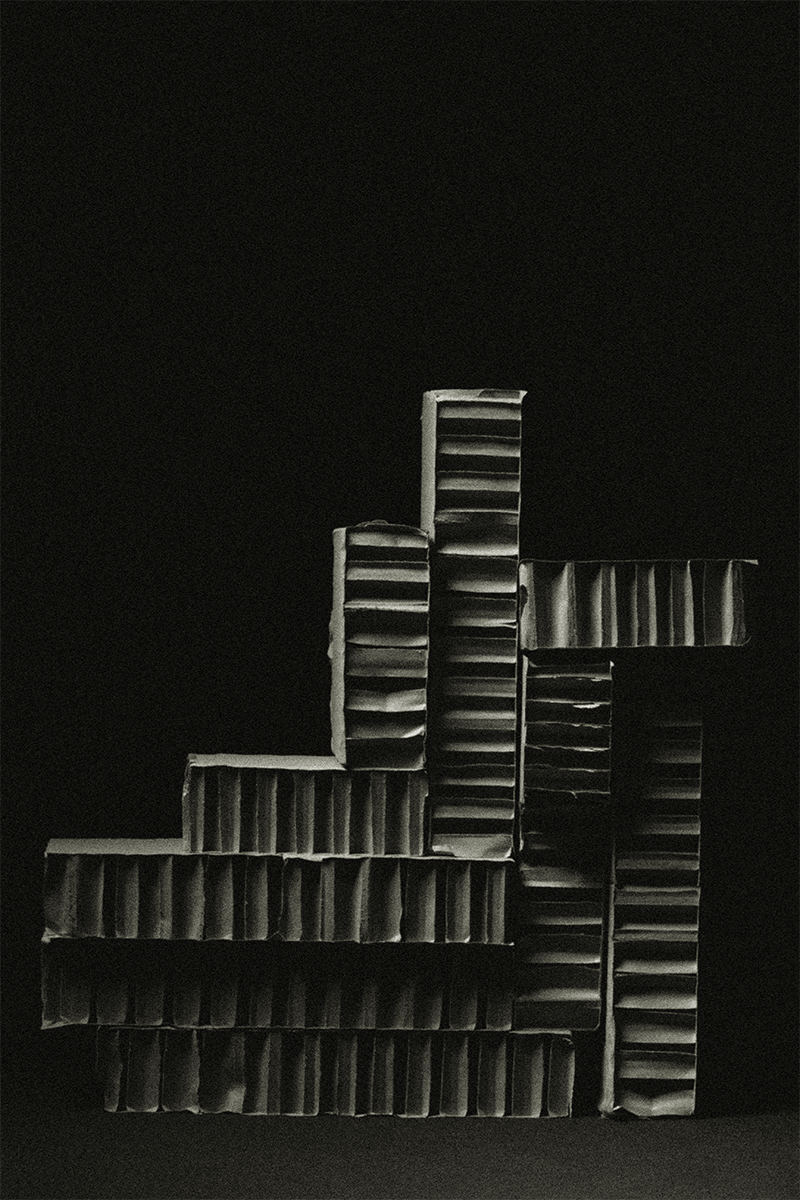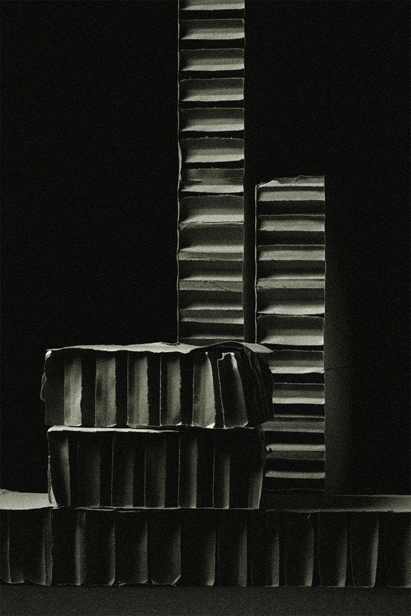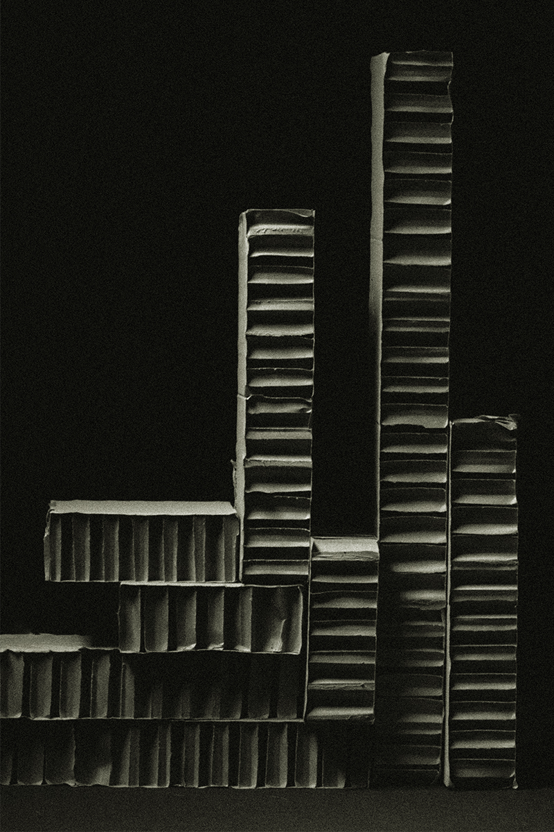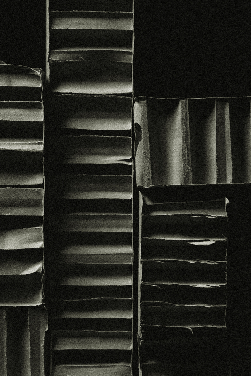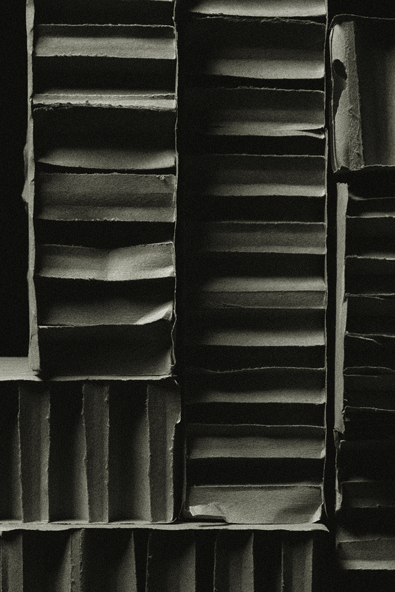 abritée au cœur du vide. En détournant la fragilité du carton vers une forme d’éternité